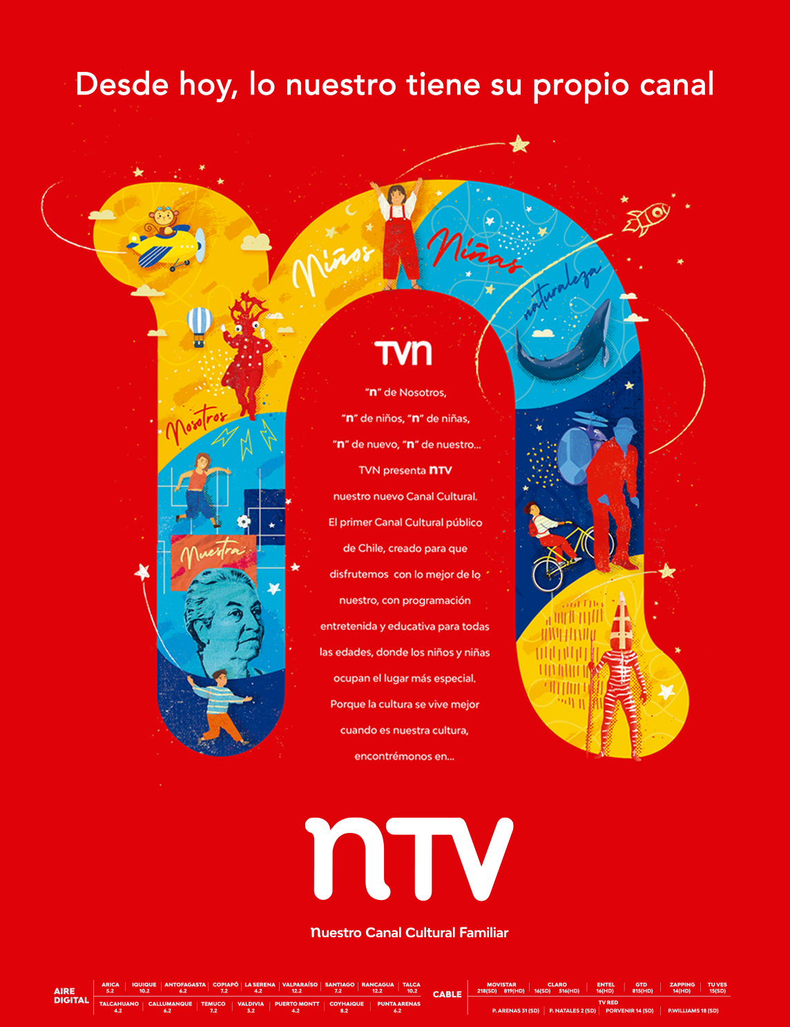 El pasar la N como inicial de la marca (NTV), nos daba la posibilidad de construir un relato desde lo NUESTRO, además de los NIÑOS y NIÑAS, protagonistas de esta señal.